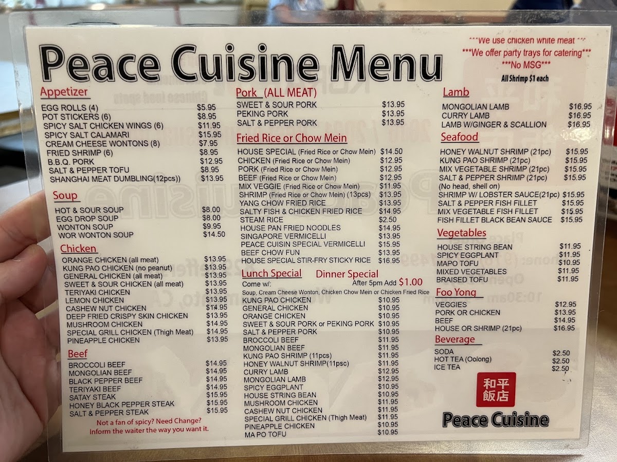 Located in the heart of West Sacramento, Peace Cuisine is a charming Chinese restaurant that offers a delightful escape for food enthusiasts and casual diners alike. Nestled at 829 Jefferson Blvd, this cozy eatery, featuring only nine tables, creates an inviting atmosphere that blends the comfort of home with the flavors of traditional Chinese cooking.